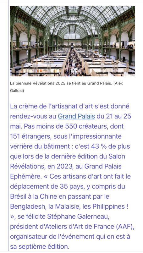 EN 2025 elle expose ses derniers grands panneaux à la biennale REVELATIONS au Grand Palais à paris.
