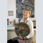 La peinture inversée sur verre lui permet de réaliser des pièces uniques d'art de la table tout comme de grandes pièces pour la décoration (panneaux muraux, plateau de table, sculptures, crédence de cuisine, décoration d'hôtels, de restaurants, spas ou de particuliers. les applications sont nombreuses en décoration intérieure.